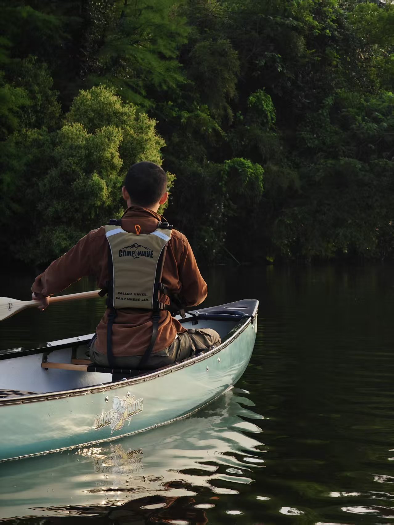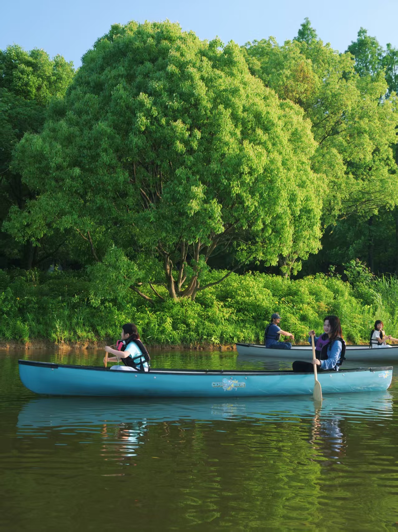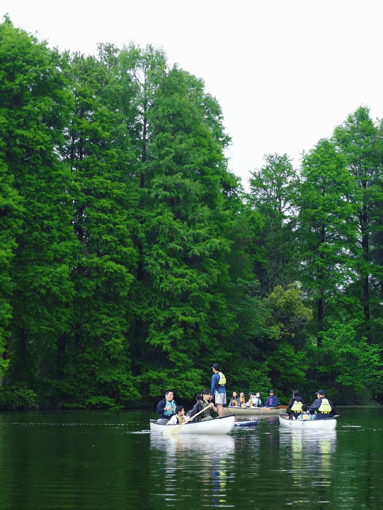在专业教练的带领下,开始独木舟湖面自然探索之旅